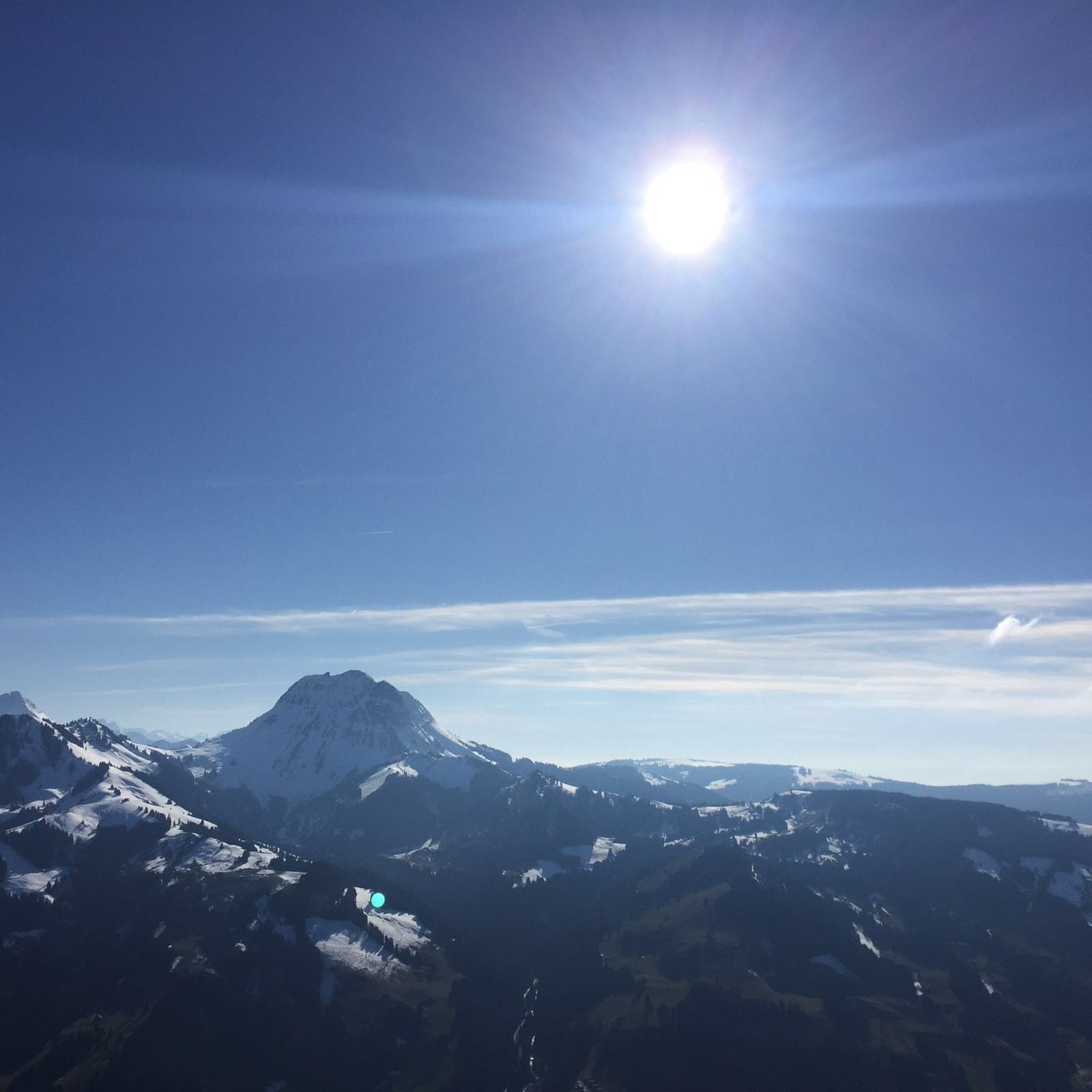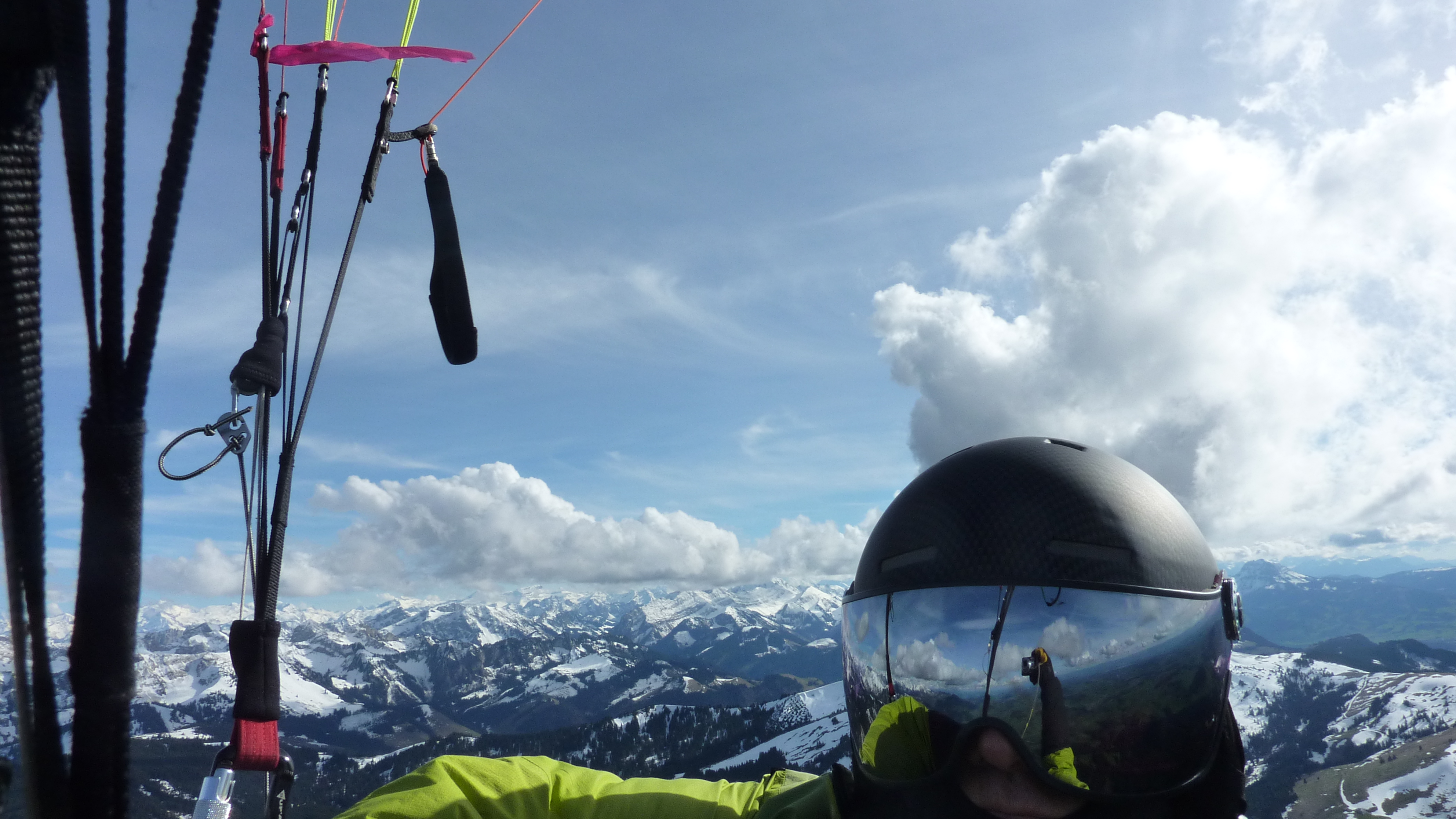 Bon l’euphorie sera pas longue, les plafonds ont presque tendance à baisser et les ombres à GROSSIR. On va quand même survolé des coins magnifique, tous un peu séparés, avant de se retrouvé ensemble en stand by à Lenk sous le Wildstrubel.