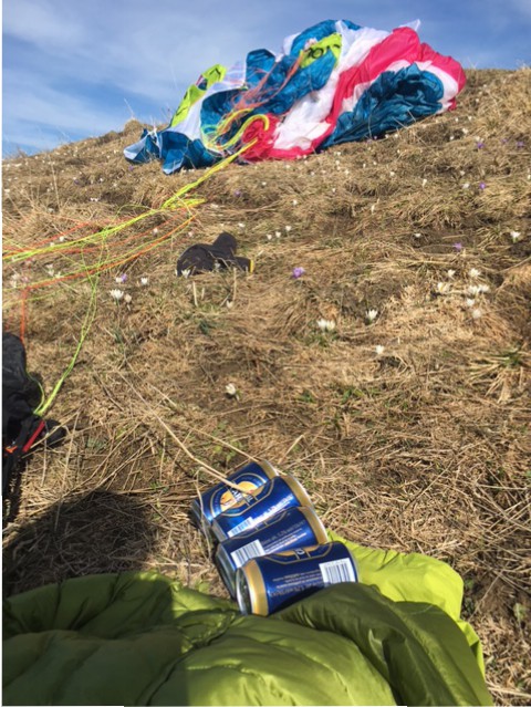 Par exemple avec mon pote JY le 17 mai on décolle de Grandvillard et on bataille pendant presque une heure, au moment où je me dis qu’une bière au barapente me ferais du bien, boum le premier vrai thermique et enfin un peu de plafs, pareil pour JY, on accompagne les quelques voiles arrivé de Jaman, et d’une crête à l’autre nous voilà dans le Gantrich, suite du vol magnifique à lécher les sapins les rochers et hop une bière à Spiez.