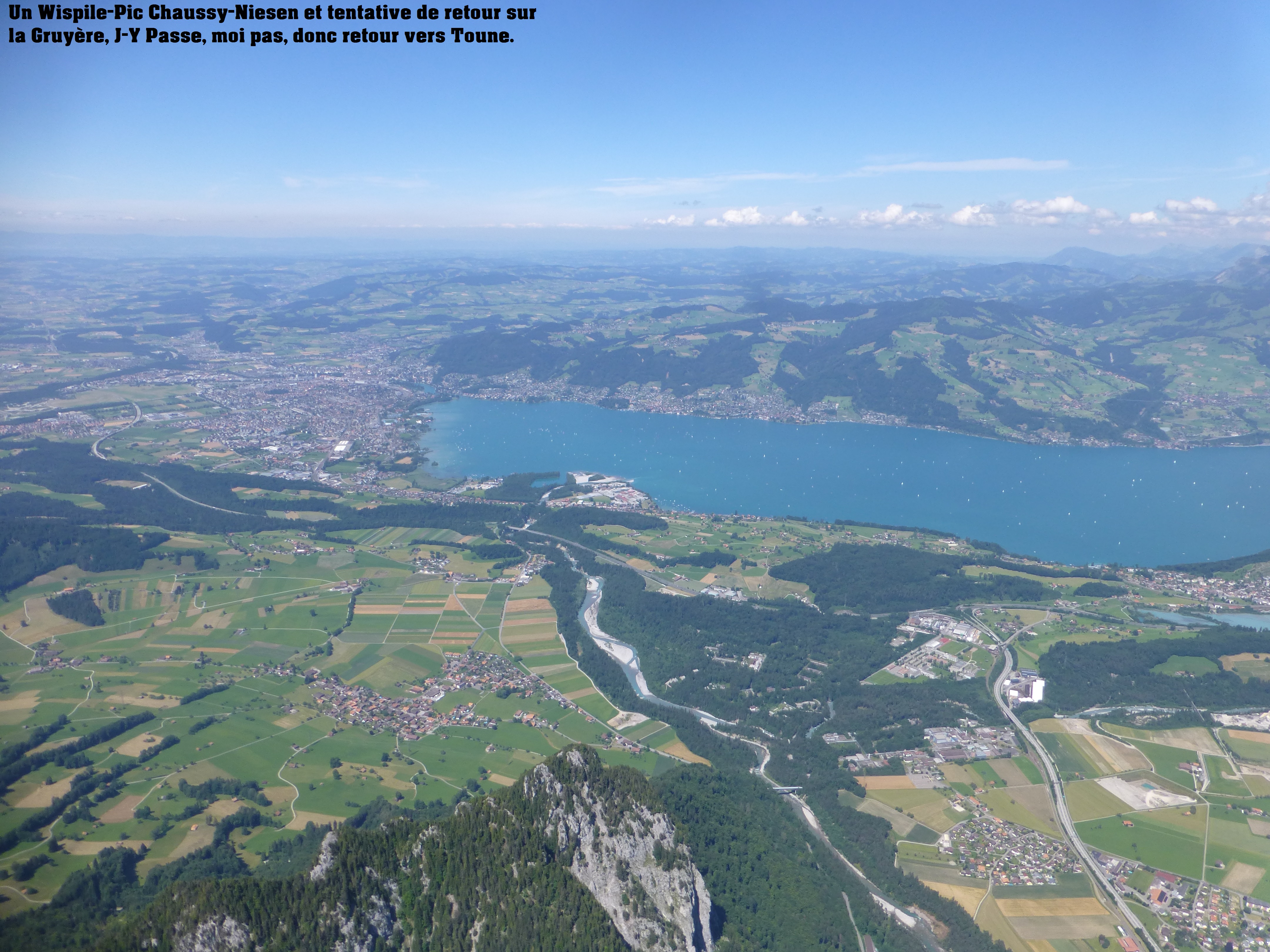 Fin juin, Wispile à ouvert, purée ça va être bon. Jean-Yves fait plus de 100 kil, on va ensemble au Pic Chaussy, puis retour, Lenk- Niesen et là on se dis, on tente le retour en Gruyère. Pour 10 secondes, 10 mètres, je passe pas une crête vers le Stockhorn et retourne vent de cul direction Toune. J-Y finit à Charmey!