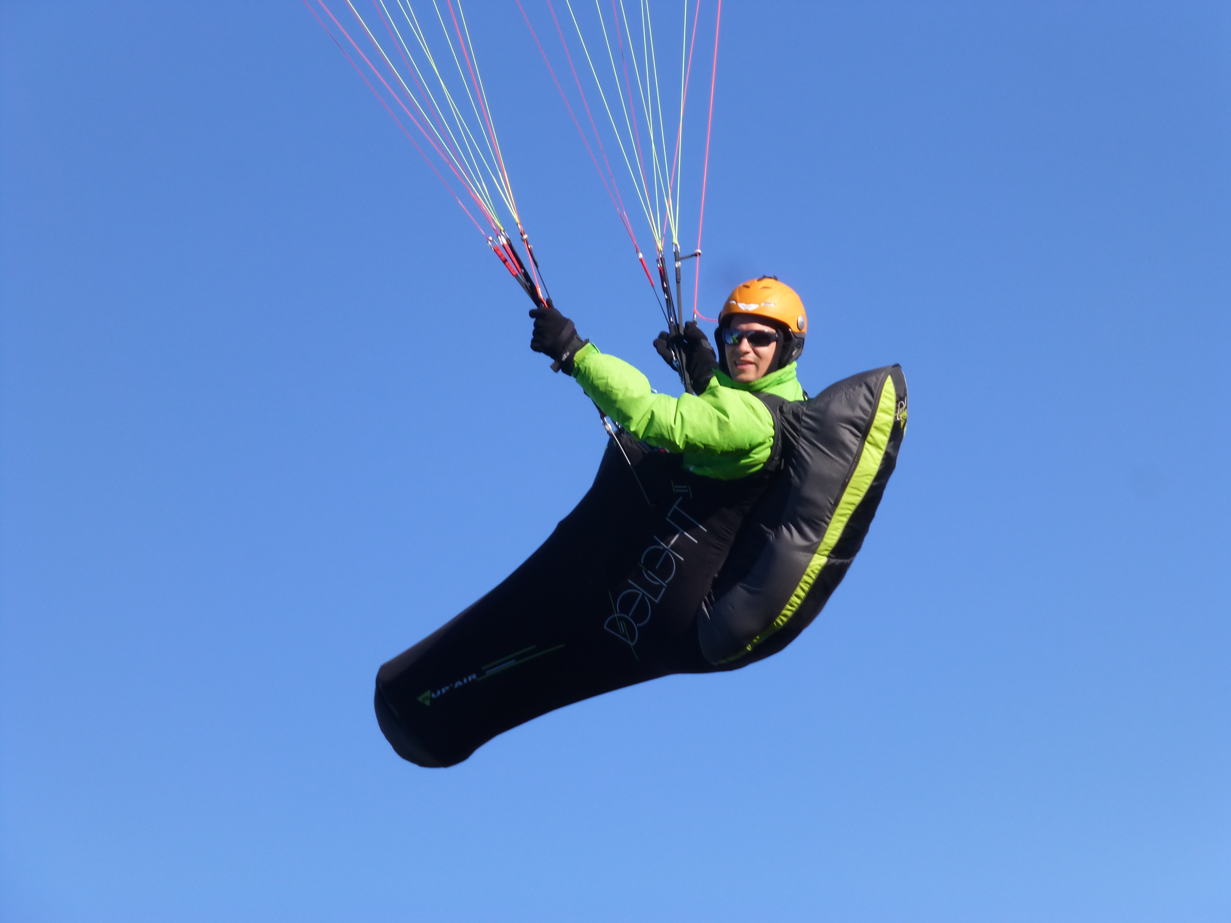 Déco vers 11.30, essai côté Est, là ou les thermiques montent les premières voilent, mais c’est presque vent de cul, ça passe pas pour Stéphane, pas pour moi non plus, donc on décollent au Nord Ouest, et on contourne pour trouver la première pompe bien musclé en bas.
