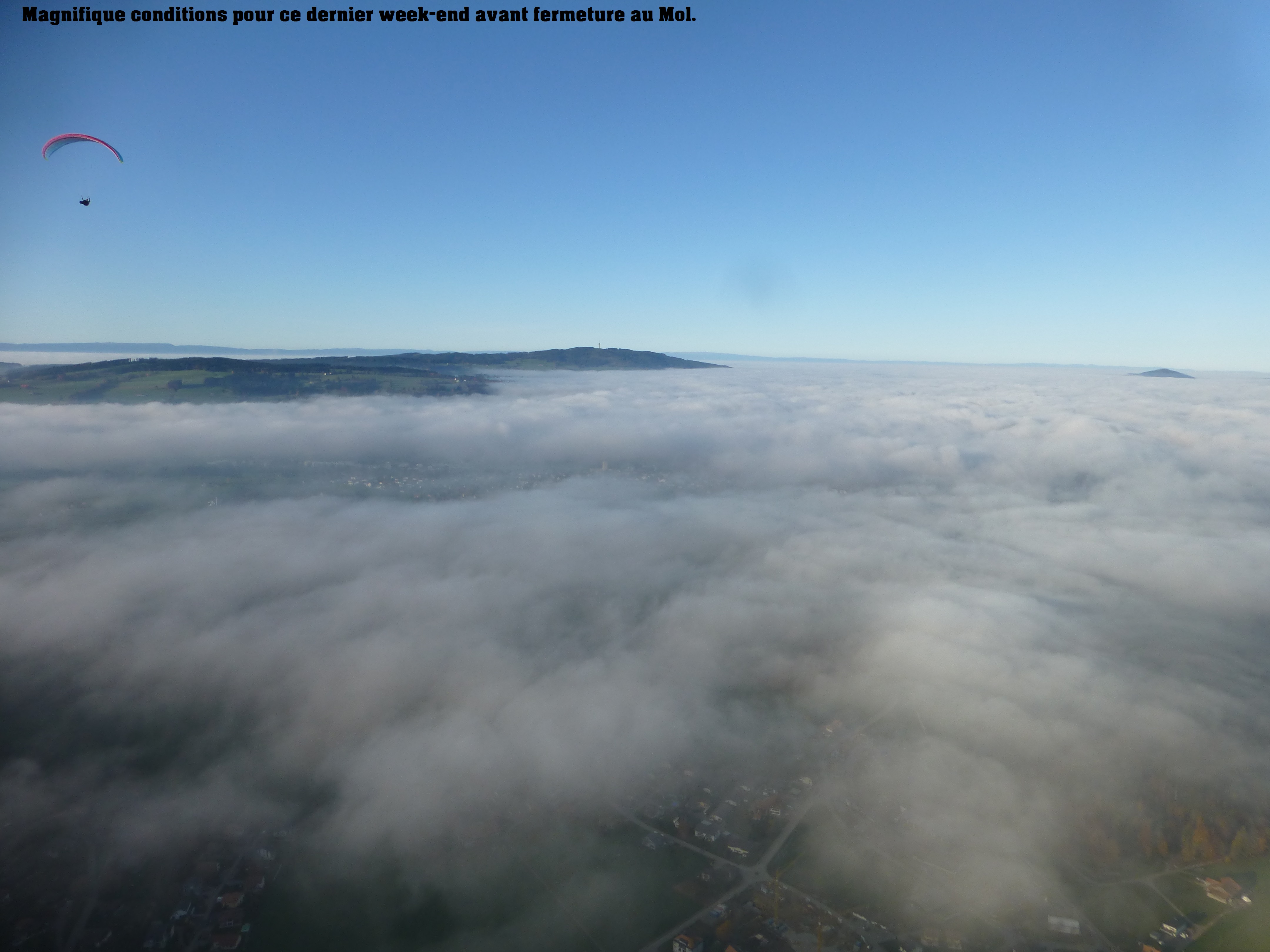 Quel automne magnifique. Après L’affinage de bière à Vacheresse, la fondue à la Hochmatt, voici le soaring du Mol.