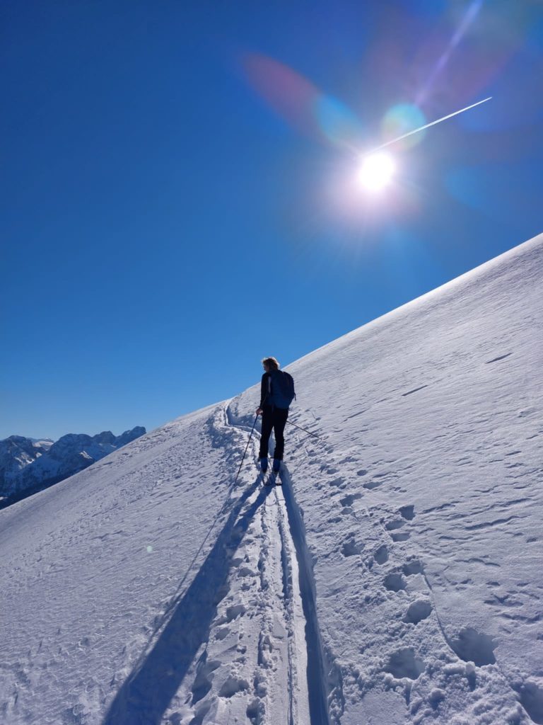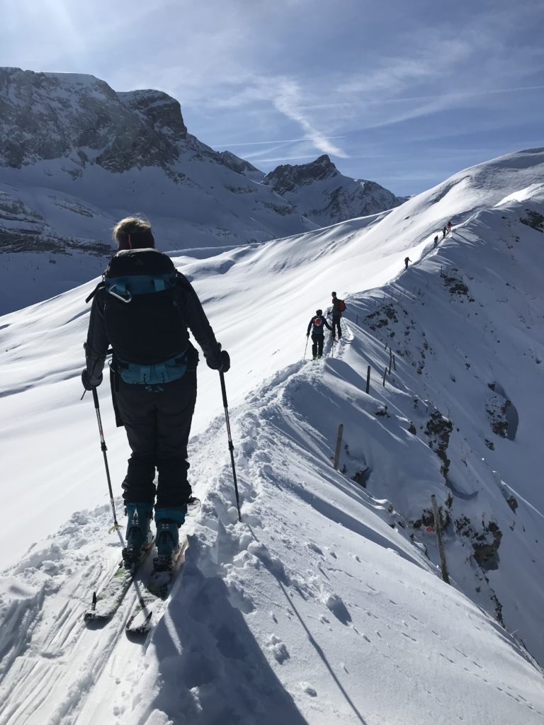 Je précise toutefois qu’il s’agit d’une course peau-de-phoque dont la descente ne sera en aucun damée! Les conditions de neige peuvent aller de poudreuse à carton. Chacun doit être capable d’effectuer des conversions dans un terrain incliné jusqu’à 35 degrés.